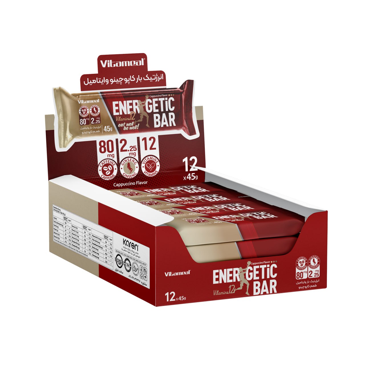 انرژی بارهای وایتامیل کارن با ۸۰ میلیگرم کافئین و عصاره جینسینگ، یک تقویتکننده انرژی سریع برای ورزش، کار و مطالعه است. افزایش تمرکز، رفع خستگی و بهبود عملکرد فیزیکی. خرید آنلاین و اطلاع از قیمت.