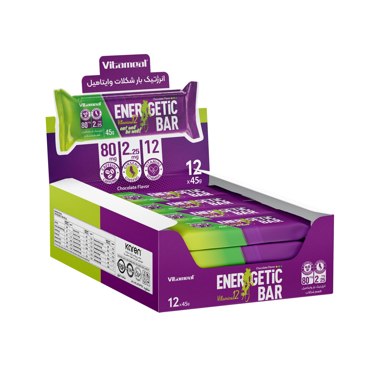 آیا در میانه روز احساس خستگی مفرط میکنید؟ آیا نیاز به تمرکز بالا برای یک جلسه کاری یا مطالعه دارید؟ انرژی بار وایتامیل کارن با فرمولاسیون قدرتمند حاوی کافئین و جینسینگ، راهحلی سریع و موثر برای بازیابی انرژی، افزایش هوشیاری و ارتقای عملکرد شماست. این شکلات انرژیزا، انتخابی ایدهآل برای ورزشکاران، دانشجویان و افراد پرکار است.